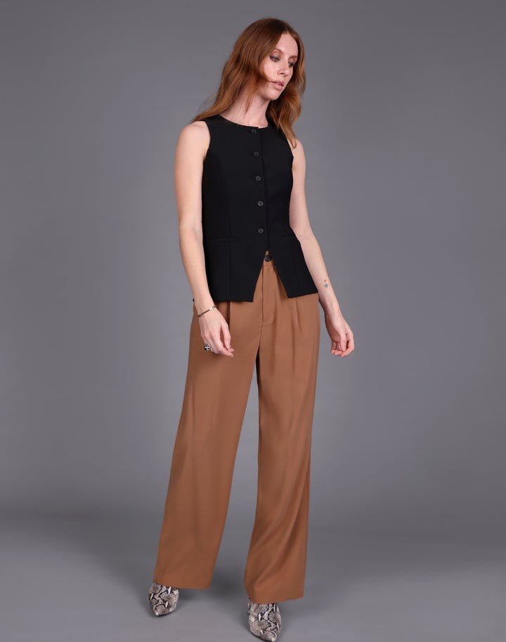 Our latest trousers are here, featuring a wide, tailored leg silhouette, a high-rise waist with a front fly zip and button closure.