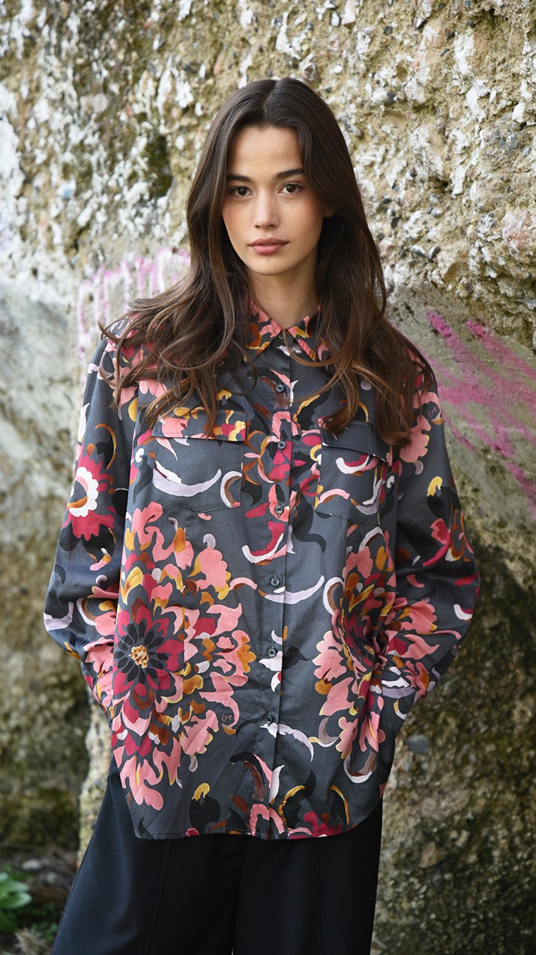A bold abstract floral print brings playful elegance to the ‘Pocket Full of Chic’ shirt, crafted in 'Medallionaire' cotton sateen. Its oversized silhouette drapes effortlessly, while a button-through front, flap-patch pockets, and fixed cuffs with button fastening add thoughtful structure to this fashion-led wardrobe essential.