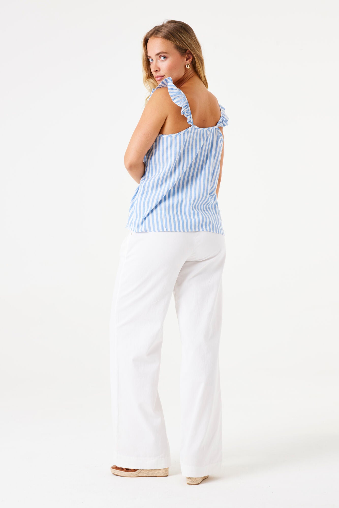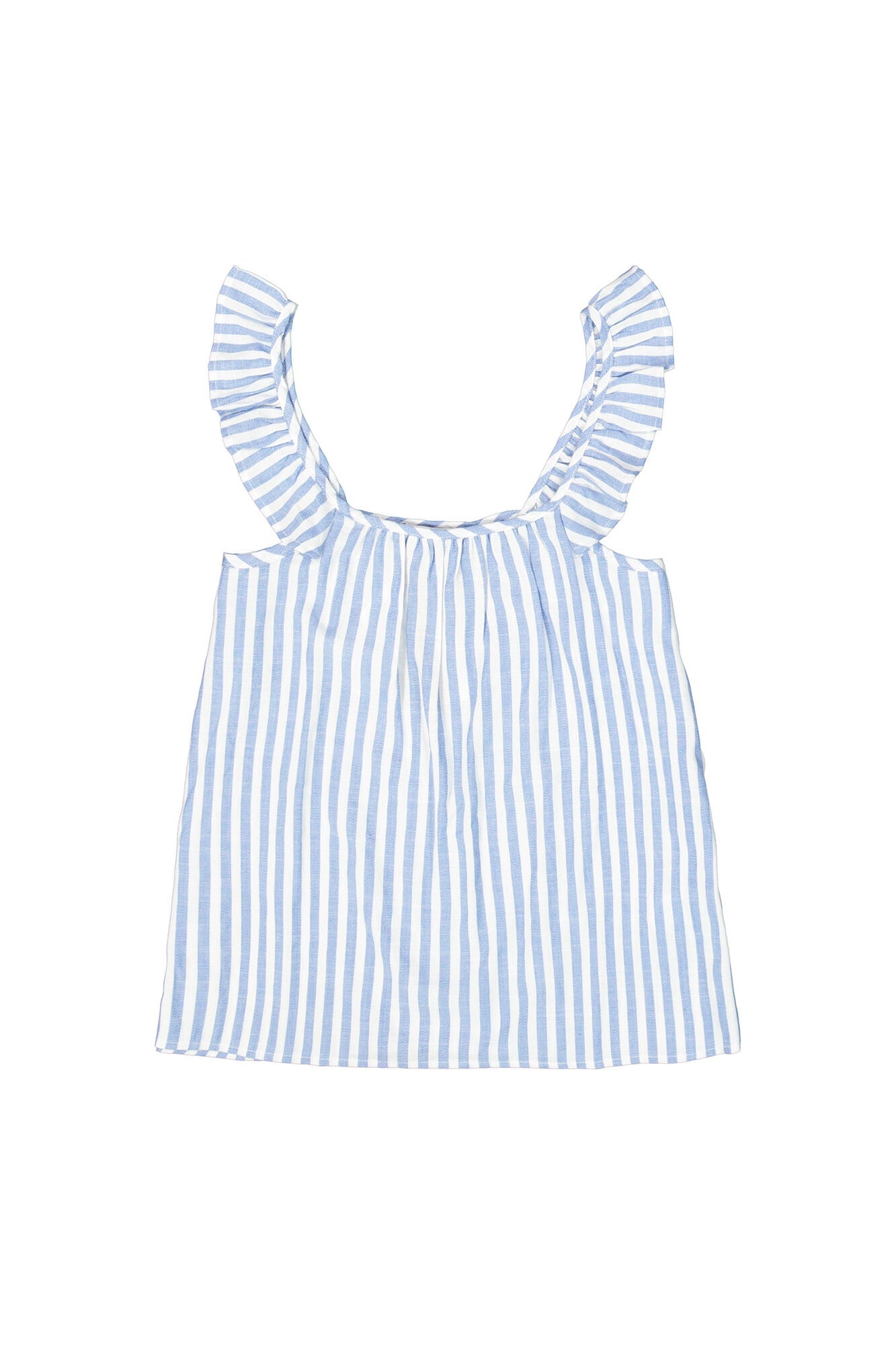 Crafted from a soft, airy fabric, it's designed with wide ruffled straps and a gently gathered neckline for a feminine, relaxed silhouette.
