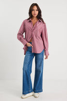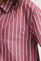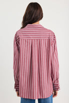 Feel instantly polished in the You Got This shirt, a relaxed take on the classic button-down. With its burgundy base and crisp vertical stripes, this oversized silhouette brings just the right amount of structure while still feeling soft and effortless thanks to its 100% natural cotton feel. It's a go-to piece for those high-low dressing moments, tucked into denim for brunch, or layered over trousers for an off-duty edge.