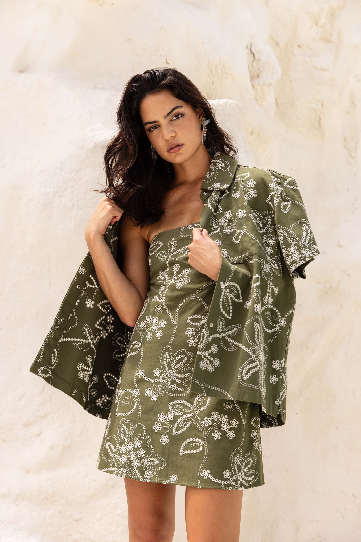 Edwin Shirt - Khaki w/White Embroidery