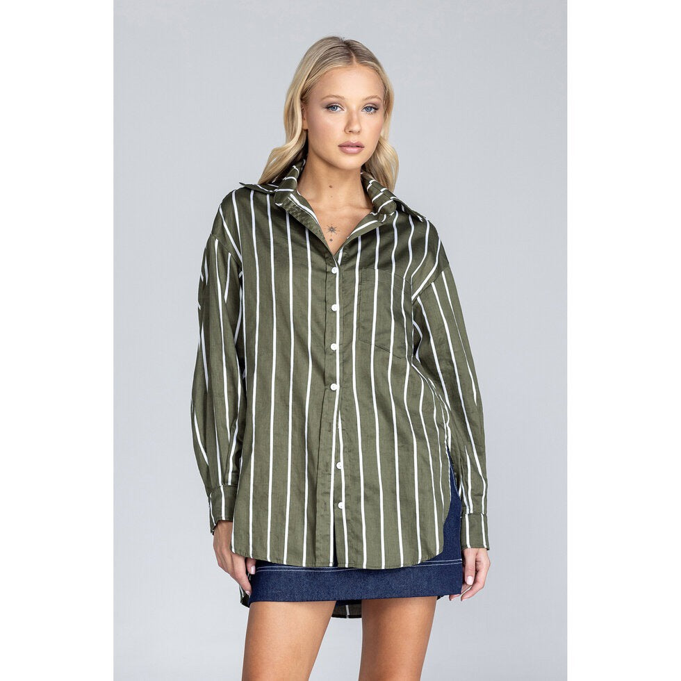 You Got This Poplin Oversized Shirt - Black Stripe