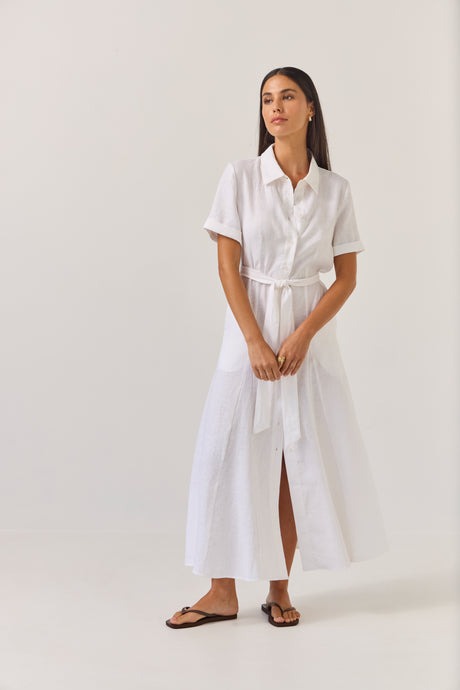 Godet Shirt Dress - White