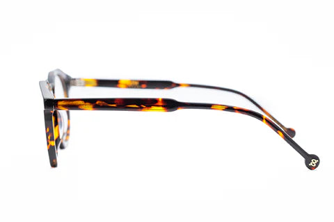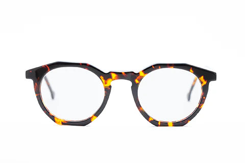 Featuring specs of golden hues through the darkness this acetate is our contemporary take on a classic. Brown tones following through from frame to lens offering a cohesive finish. Complete with Clear lenses, ready to have fitted with your prescription.