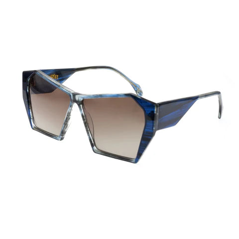 Smokey blue fades into grey creating a subtle contrast, the tones blend beautifully together while the slight transparency allows light to shine through, adding dimension. Blue tones are complimented with Brown Gradient lenses, providing quality UV protection and high sun-glare reduction.