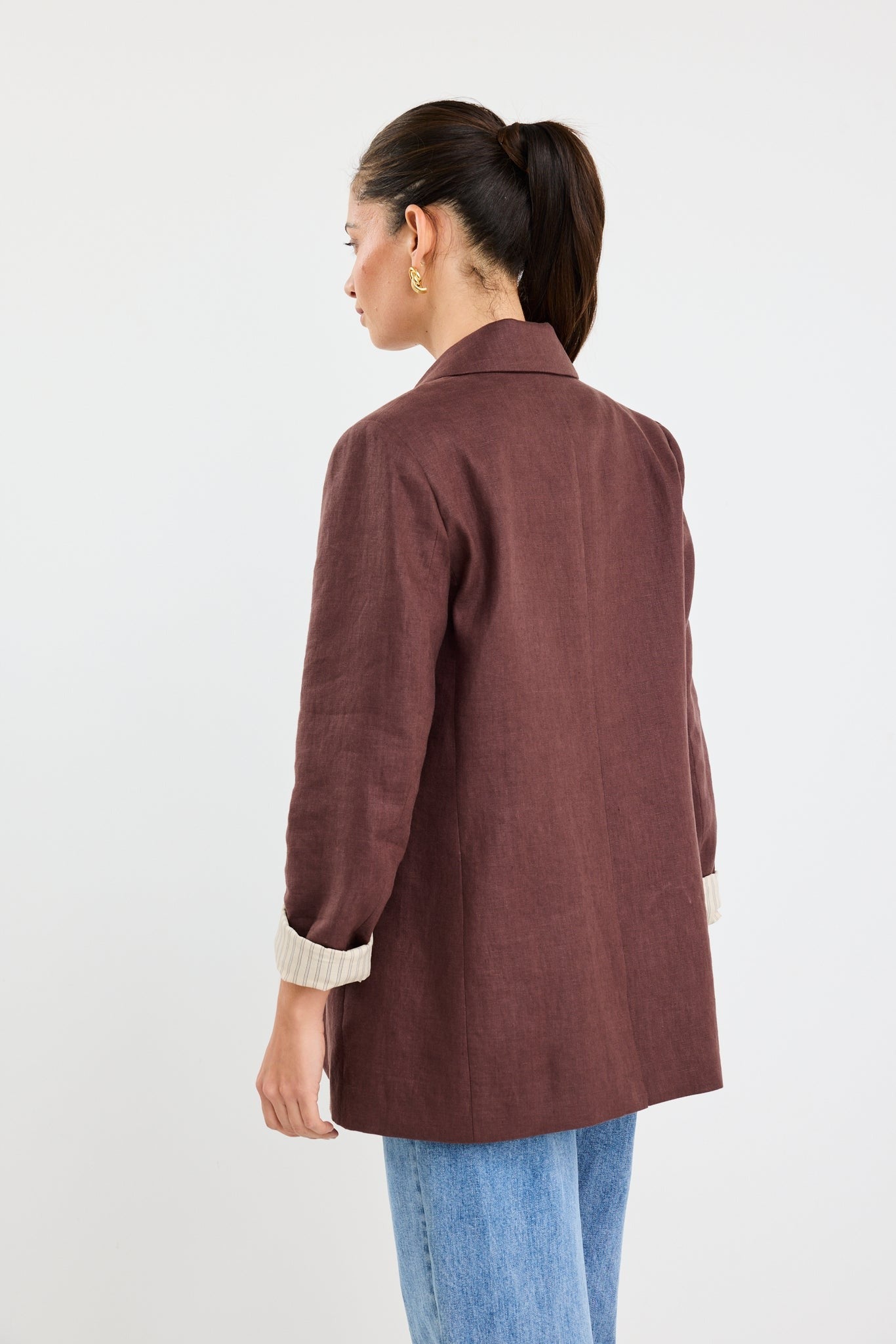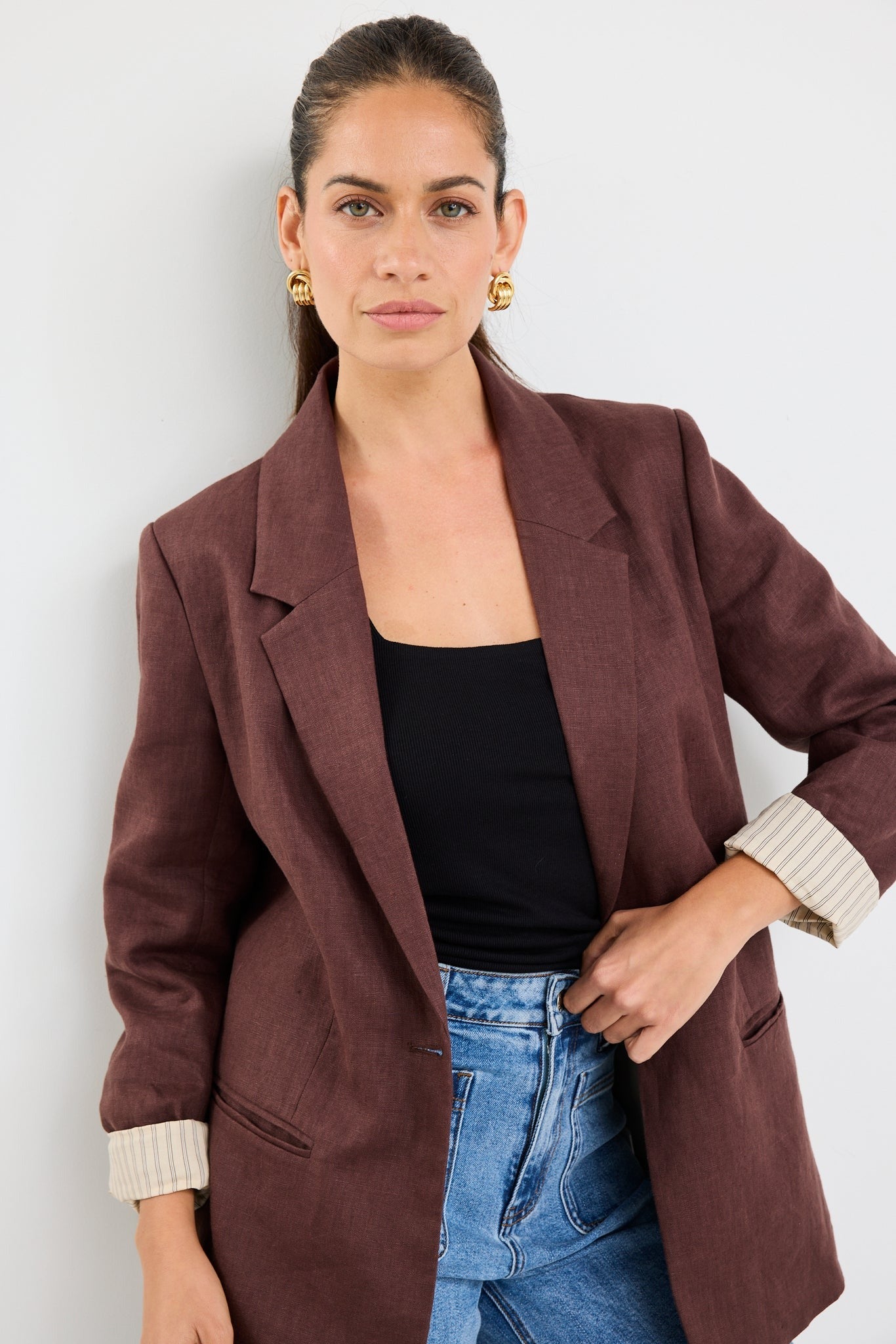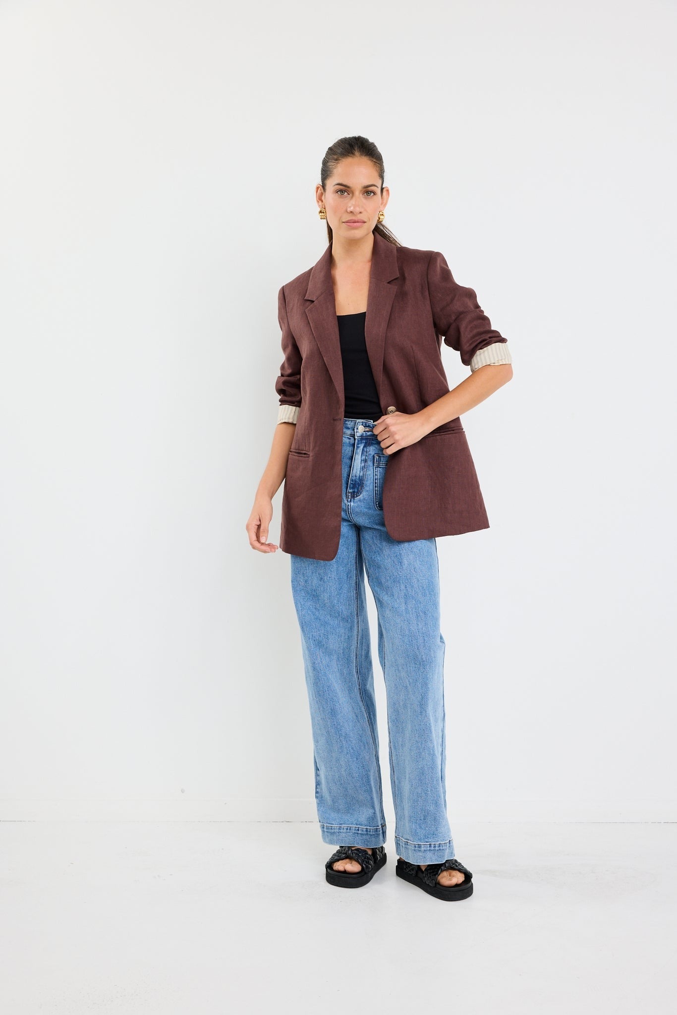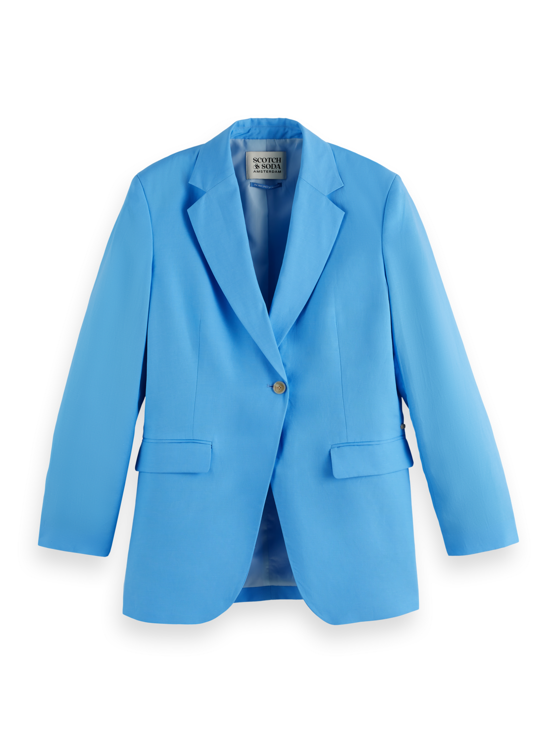 Boyfriend Linen Blend Blazer - Aqua Blue