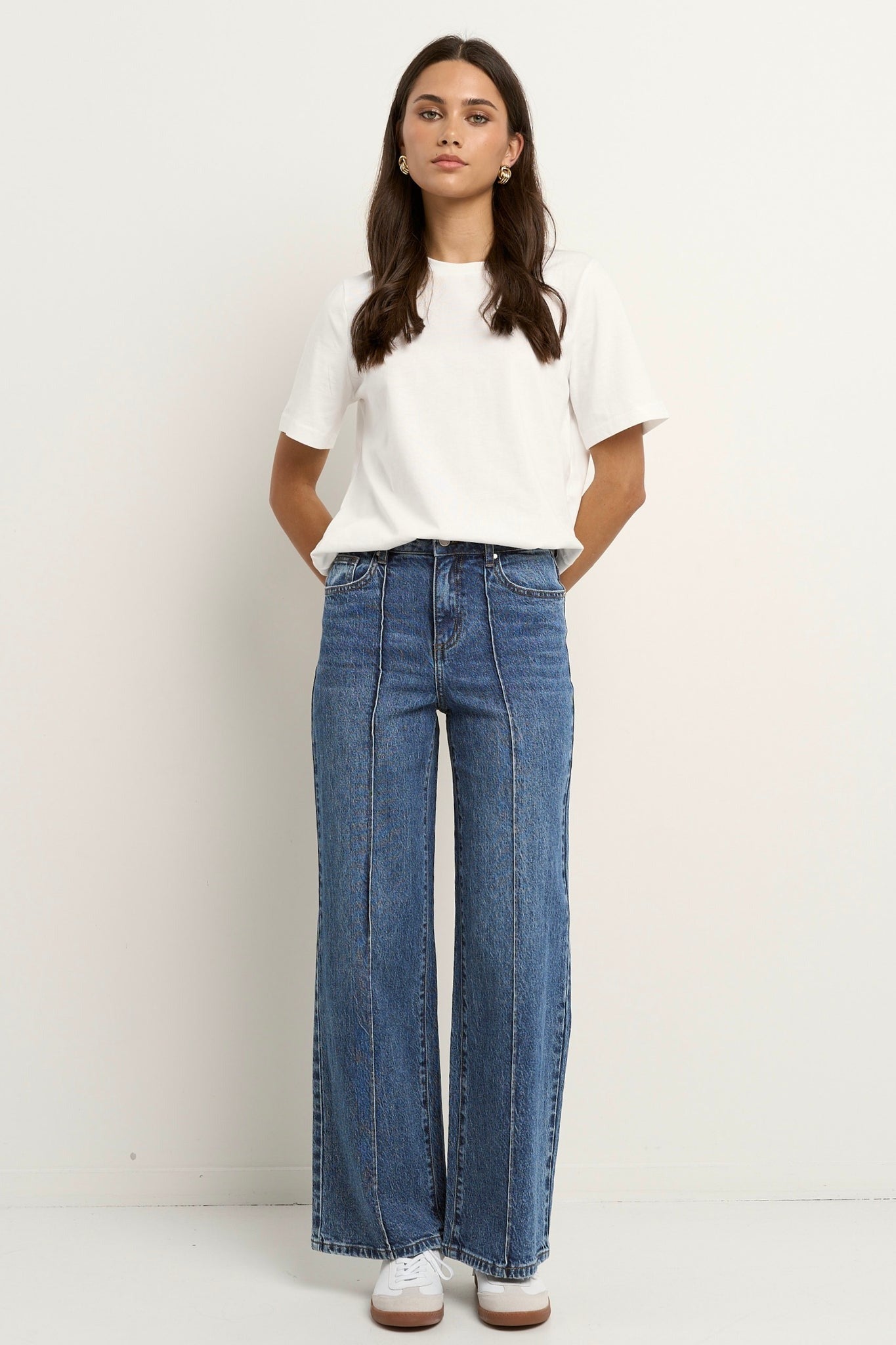 The Mayfair Jean brings a fresh feel to your denim wardrobe with a flattering high rise and modern wide leg silhouette. Designed in premium cotton denim with just a hint of stretch, they hold their shape while feeling easy all day. The exposed front seam adds a tailored edge that levels up even your most casual tee.