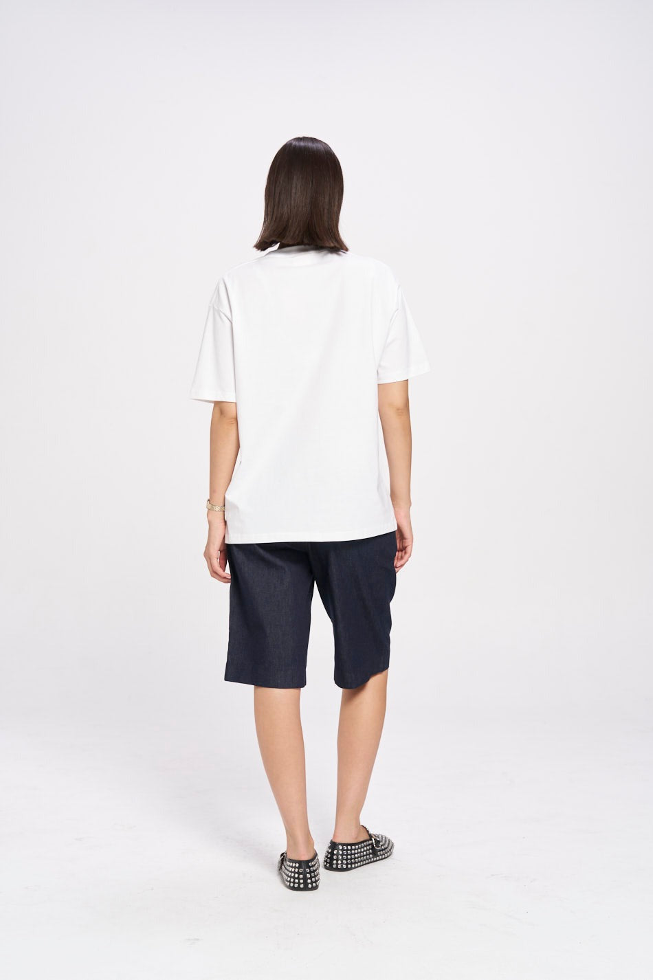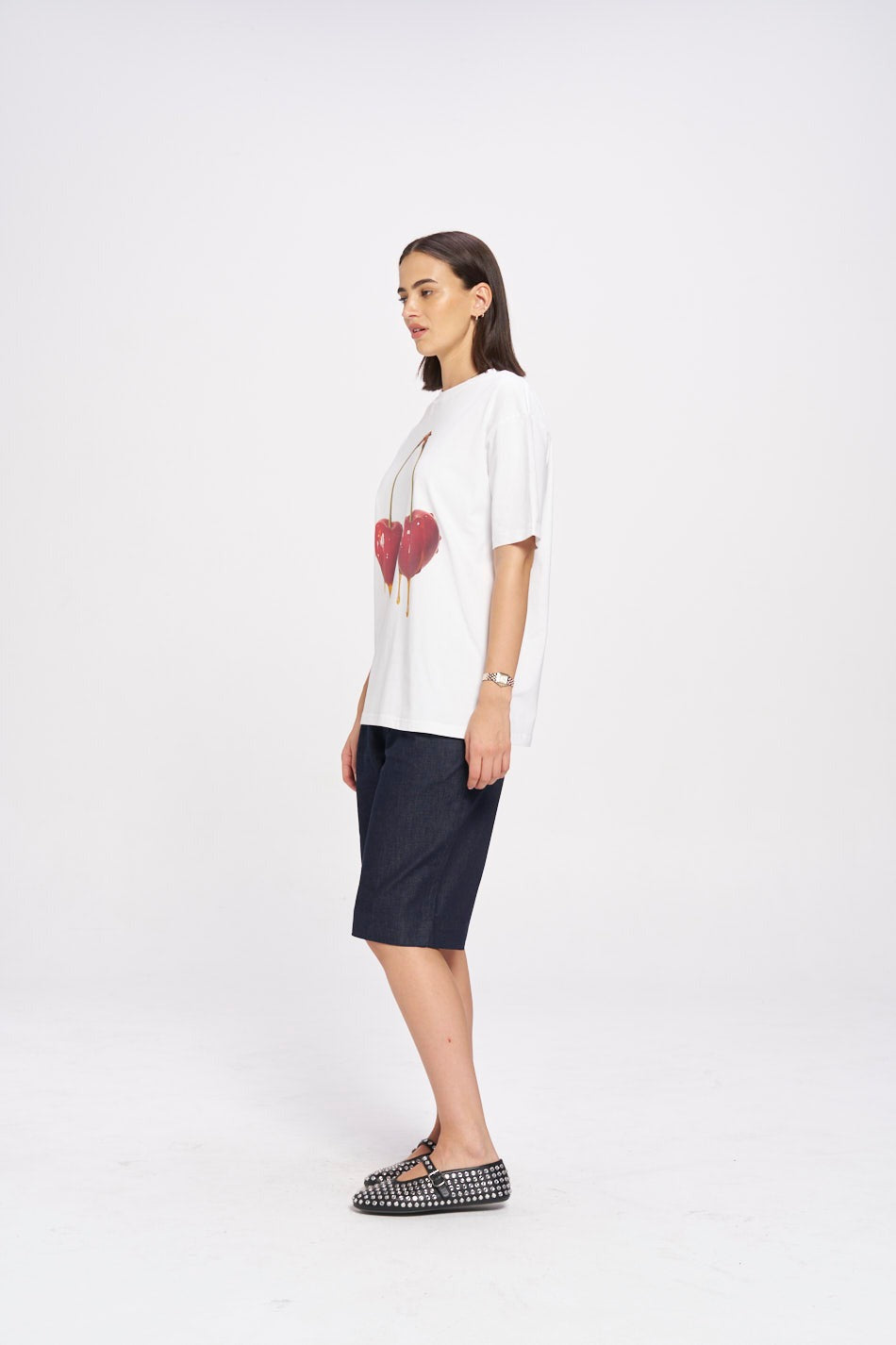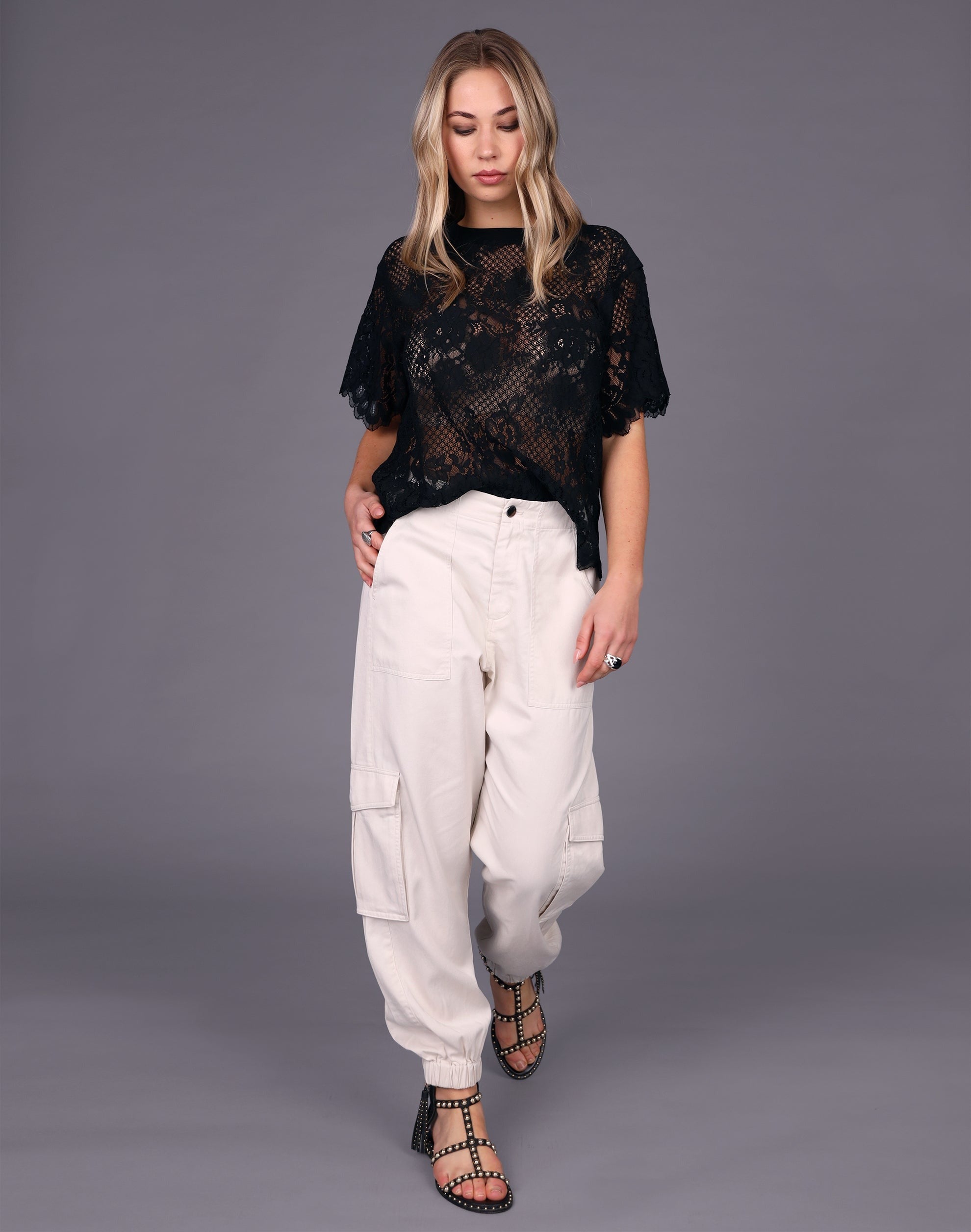 Broderie Anglaise Cap Sleeve Tee - Ecru