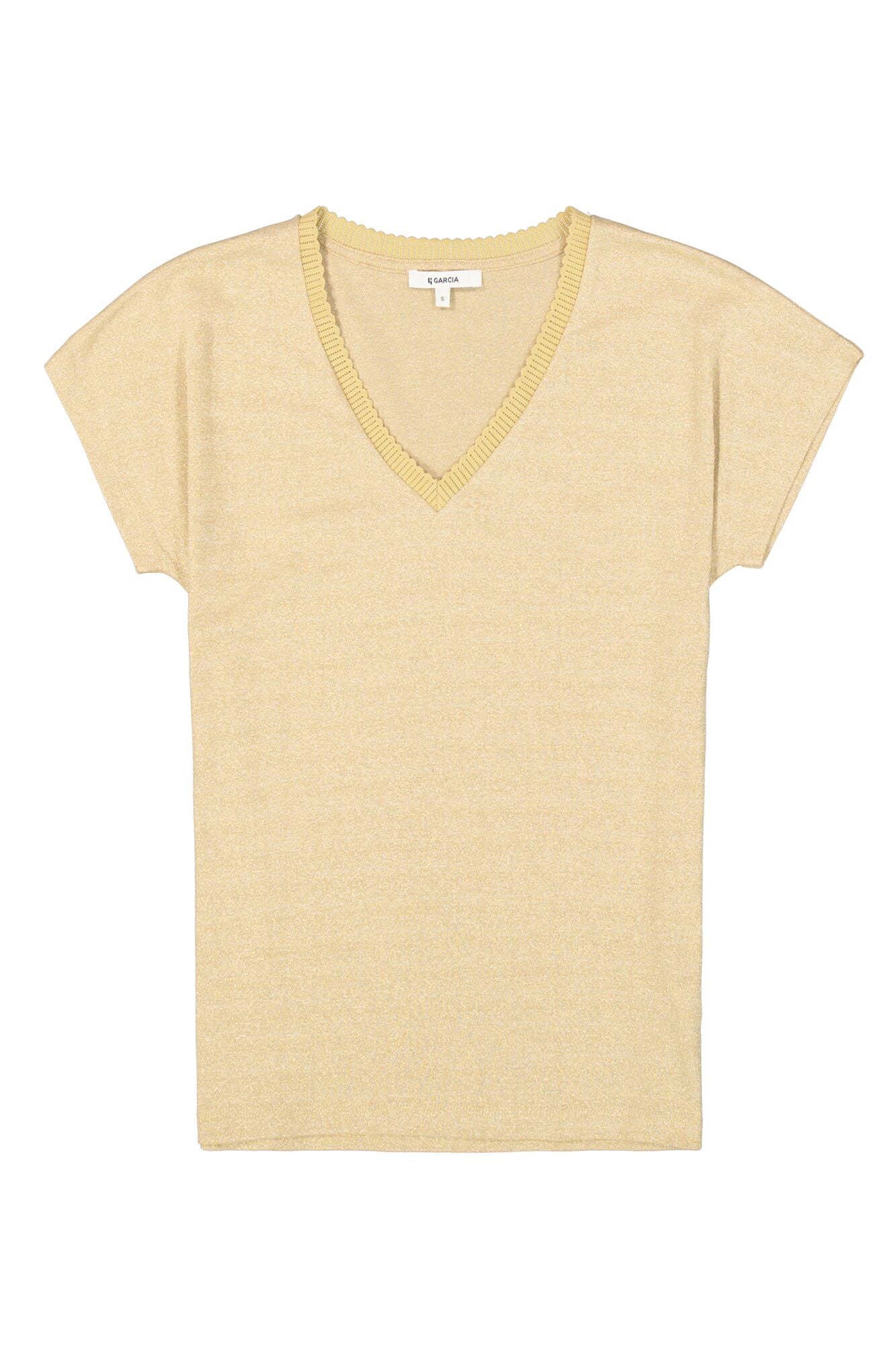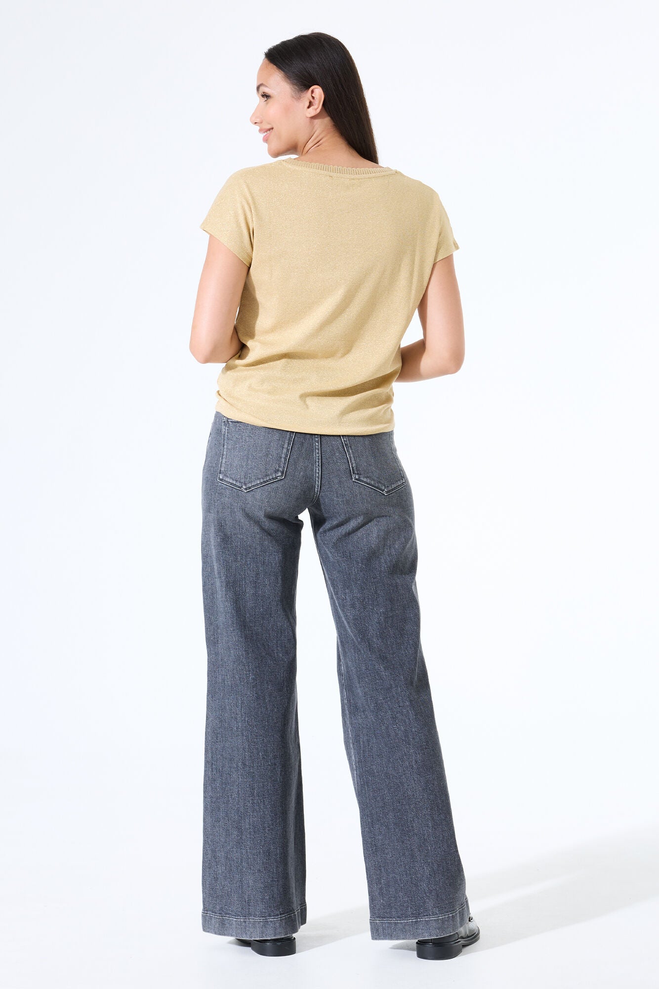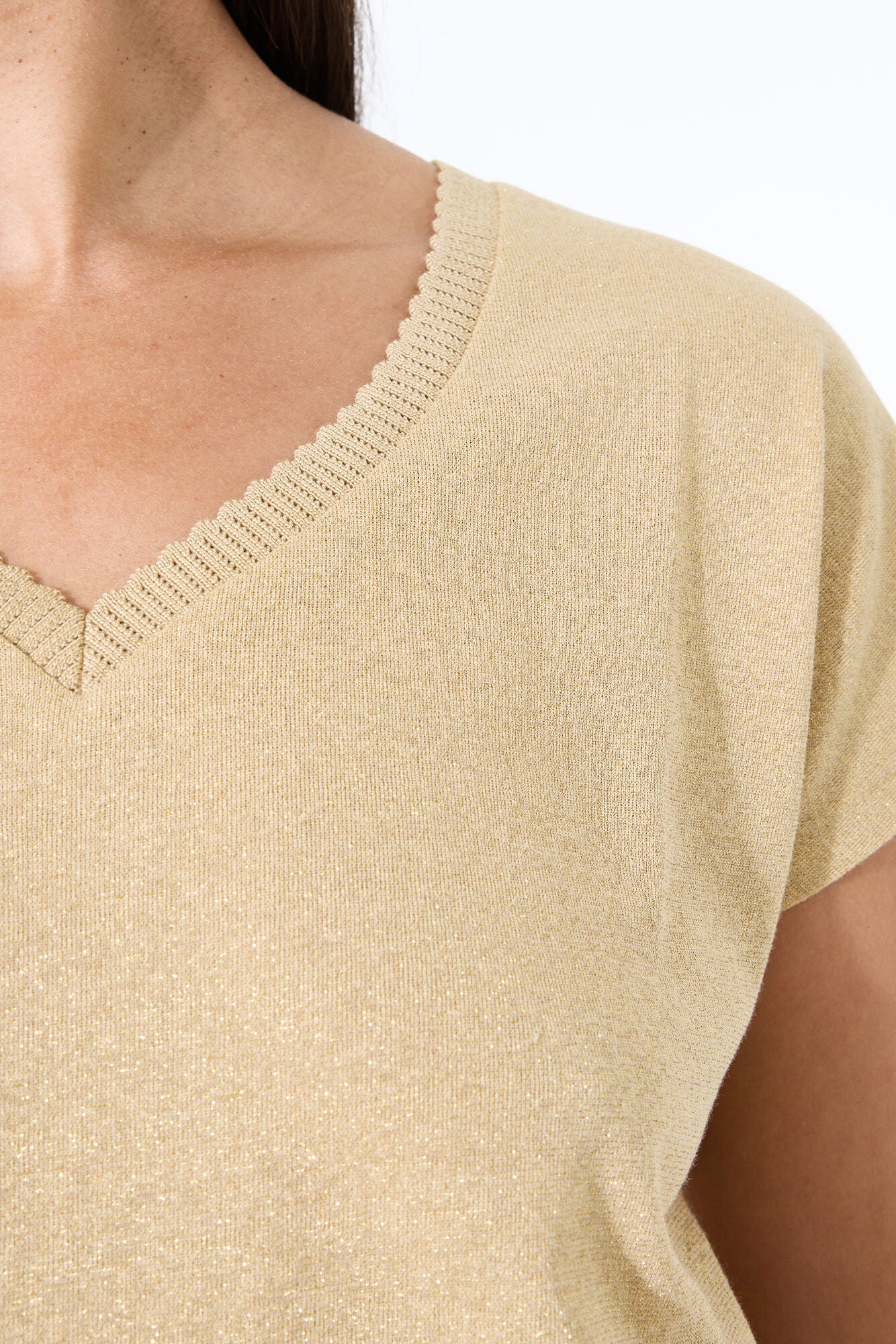 Scalloped Edge V-Neck Tee - Metallic Gold