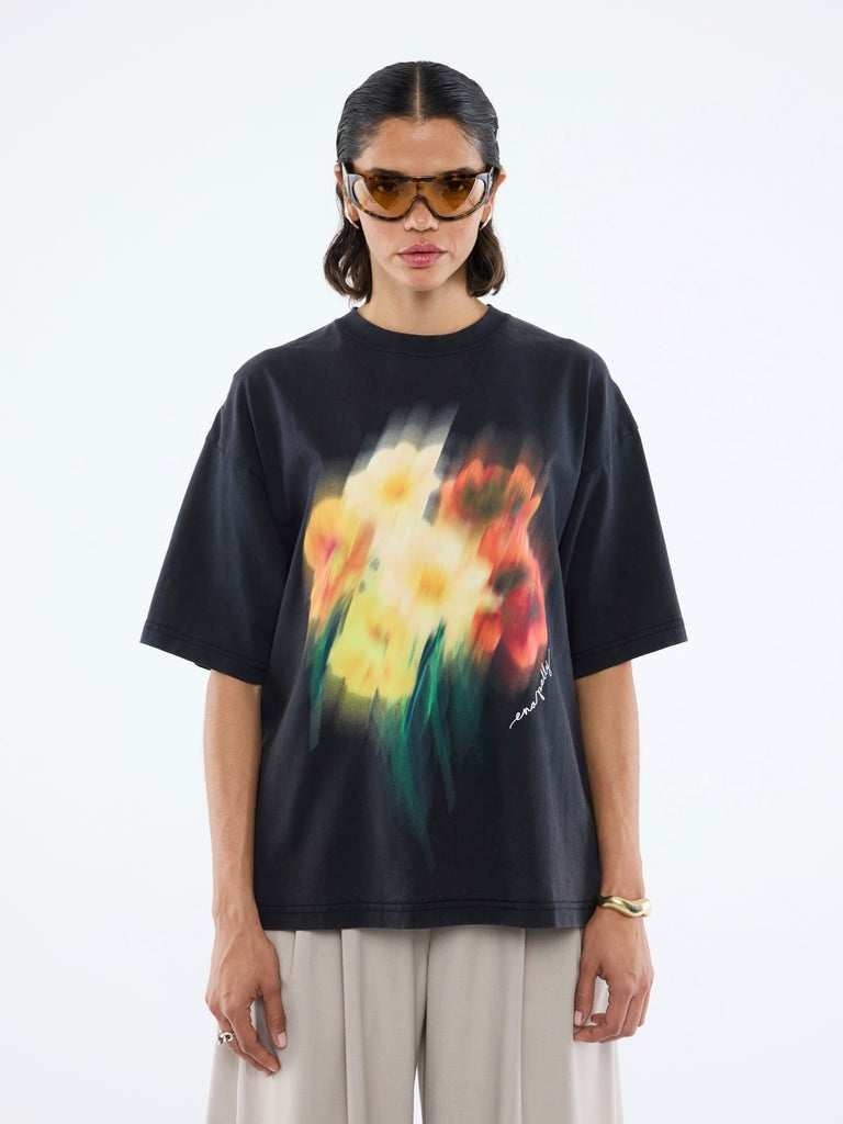 Blurred Sunflowers Tee - Vintage Black