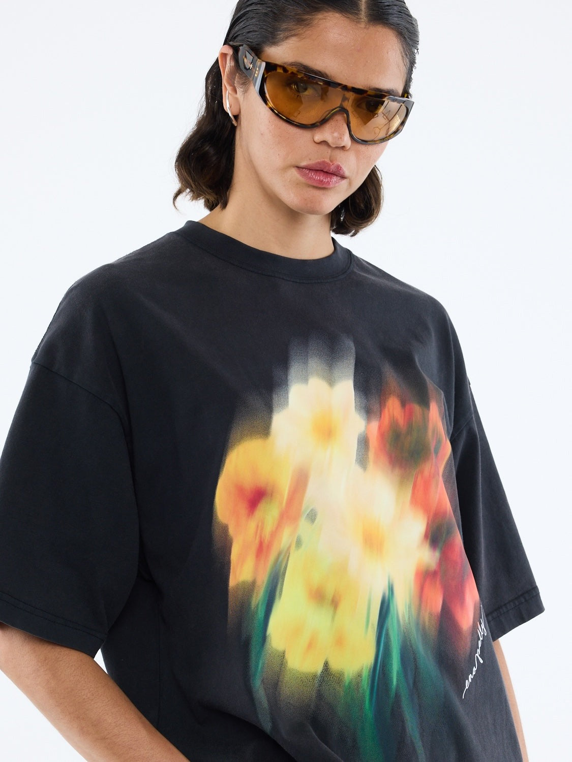 The Blurred Daisy From Tree is cut in an oversized silhouette with drop shoulders for a relaxed, boxy look. Finished with a bold graphic print that brings a modern edge. Completed with a classic crew neckline for timeless appeal.