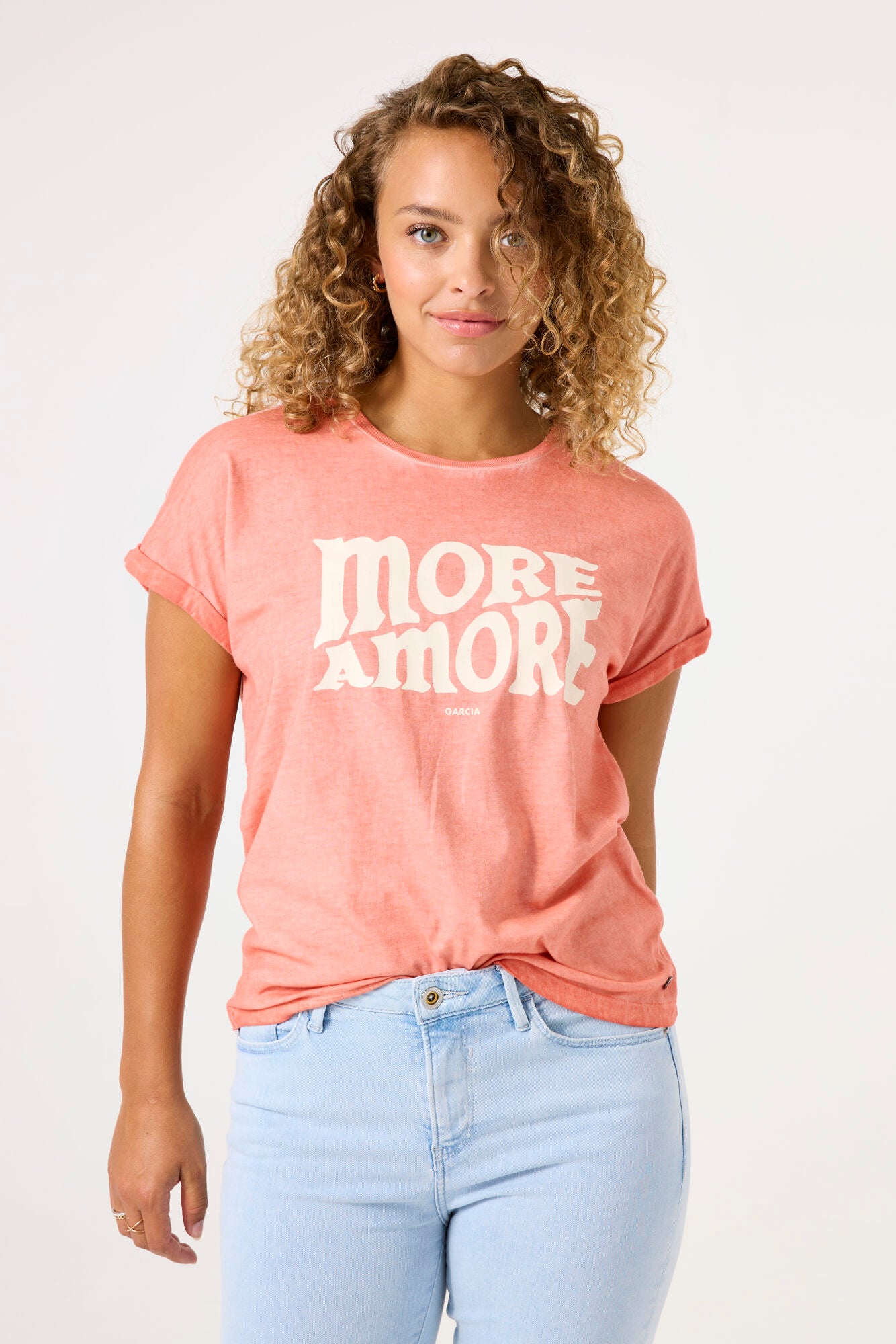 'MORE AMORE' Tee - Peach Sorbet