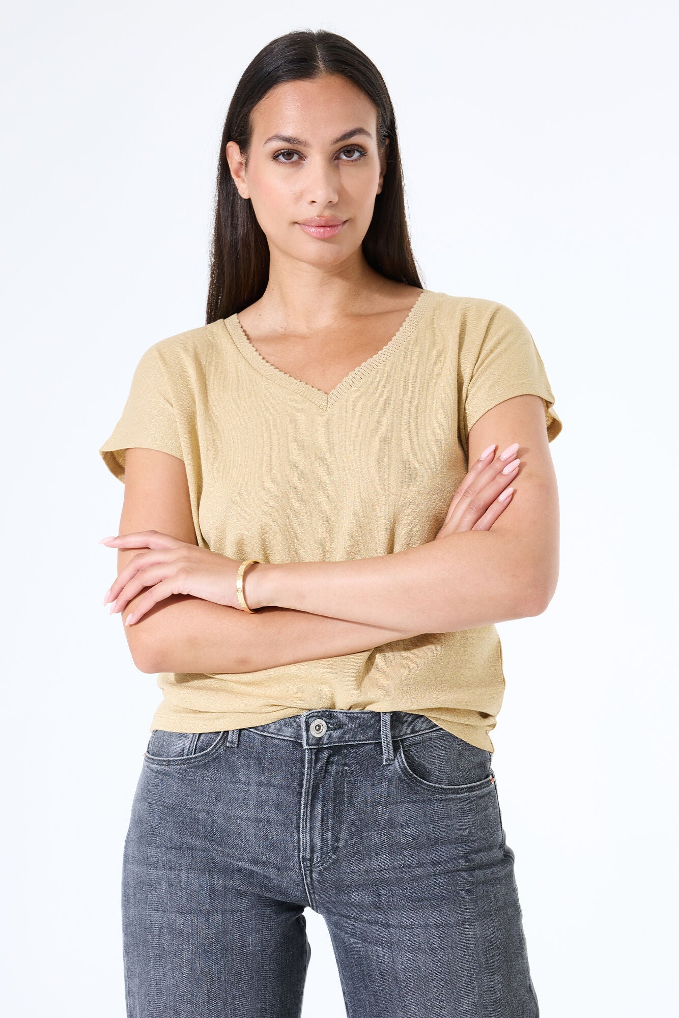 Scalloped Edge V-Neck Tee - Metallic Gold