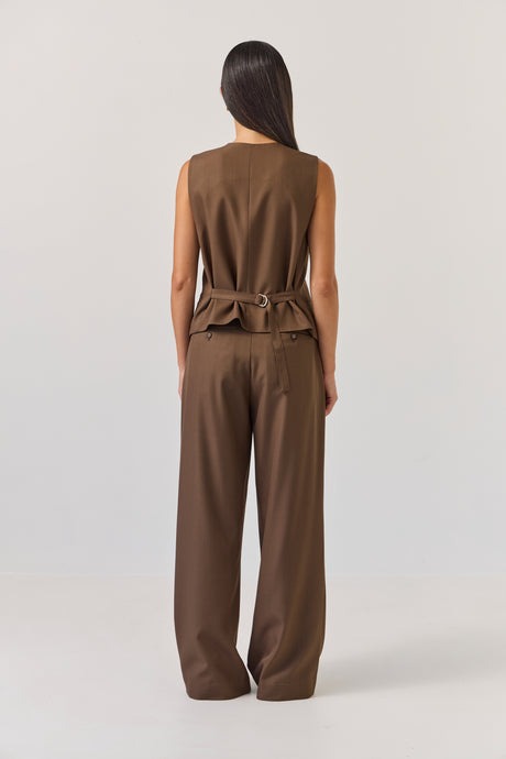 Our favourite vest shape, this style can be worn on its own or layered over a shirt or tee. Wear with the matching Boyfriend Pants for a sleek co-ord look, or pop the matching Longline Blazer overtop for tonal goodness.