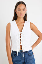 Spectacle Tie Front Vest - Ivory Ramie