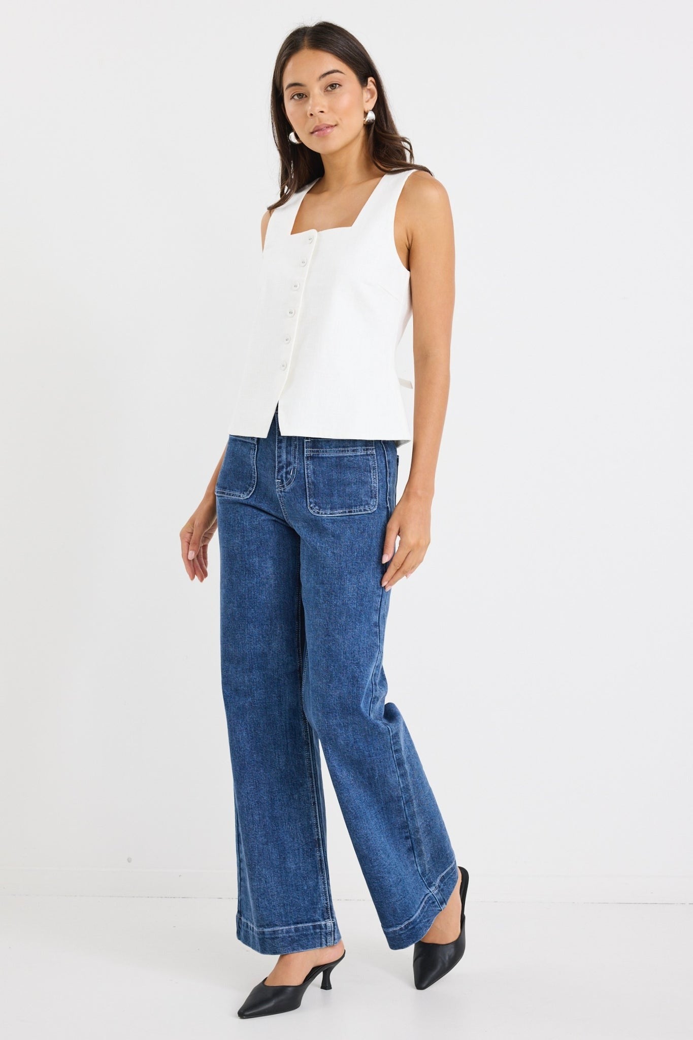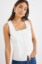 The Viaduct linen vest is all about clean lines and confident style. With its sharp square neckline, flattering silhouette, and button down detail, this piece brings a modern twist to a timeless classic. The soft linen blend is fully lined for all-day comfort, making it a stylish choice you'll want to wear on repeat.
