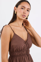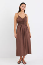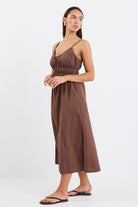 Cast Cotton Strappy Midi Dress - Chocolate