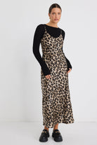Exhibition Satin V Neck Slip Dress - Animal
