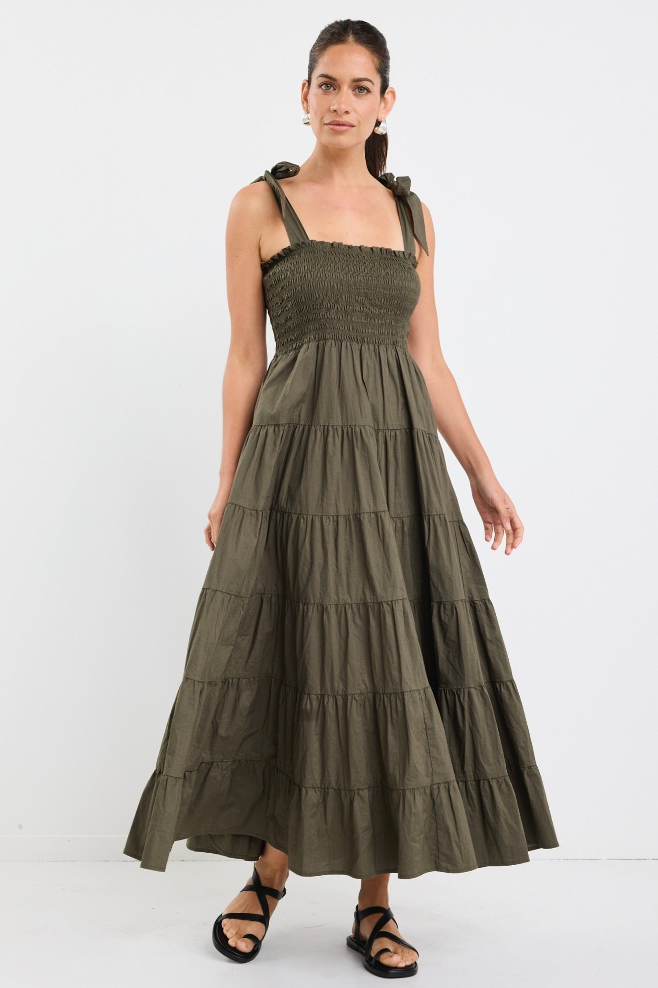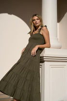 Isabella Strappy Tiered Maxi Dress - Khaki