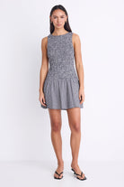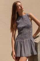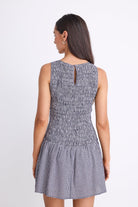 Laurel Shirred Bodice Mini Dress - Navy Mini Gingham
