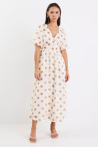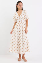 Lisbon Puff Sleeve Midi Dress - Copper Polka Dot