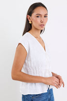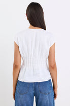 Say hello to effortless charm with the Nouveau ivory linen tie front vest from Ivy + Jack. With a soft, sculpted shape and delicate front ties, this piece is equal parts relaxed and refined. Designed to flatter with subtle texture and a cinched waist. Whether you're heading to brunch or layering for the office, this top gives you that “I just threw this on” polish.