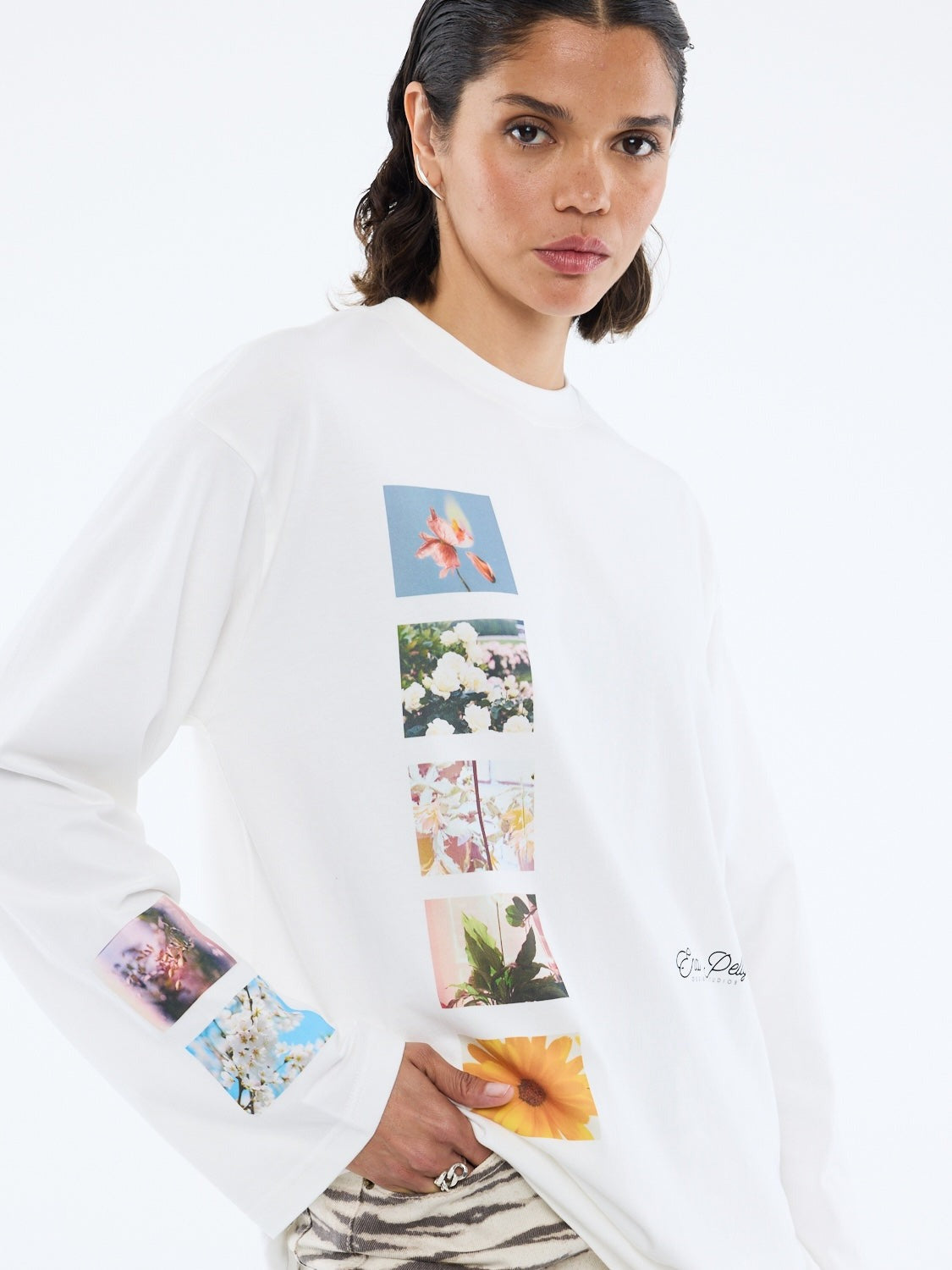 The Tiled Floral Long Sleeve is cut in an oversized silhouette with drop shoulders for a relaxed, boxy look. Finished with a bold graphic placement print on the front and on sleeves. Completed with a classic crew neckline for everyday wear.